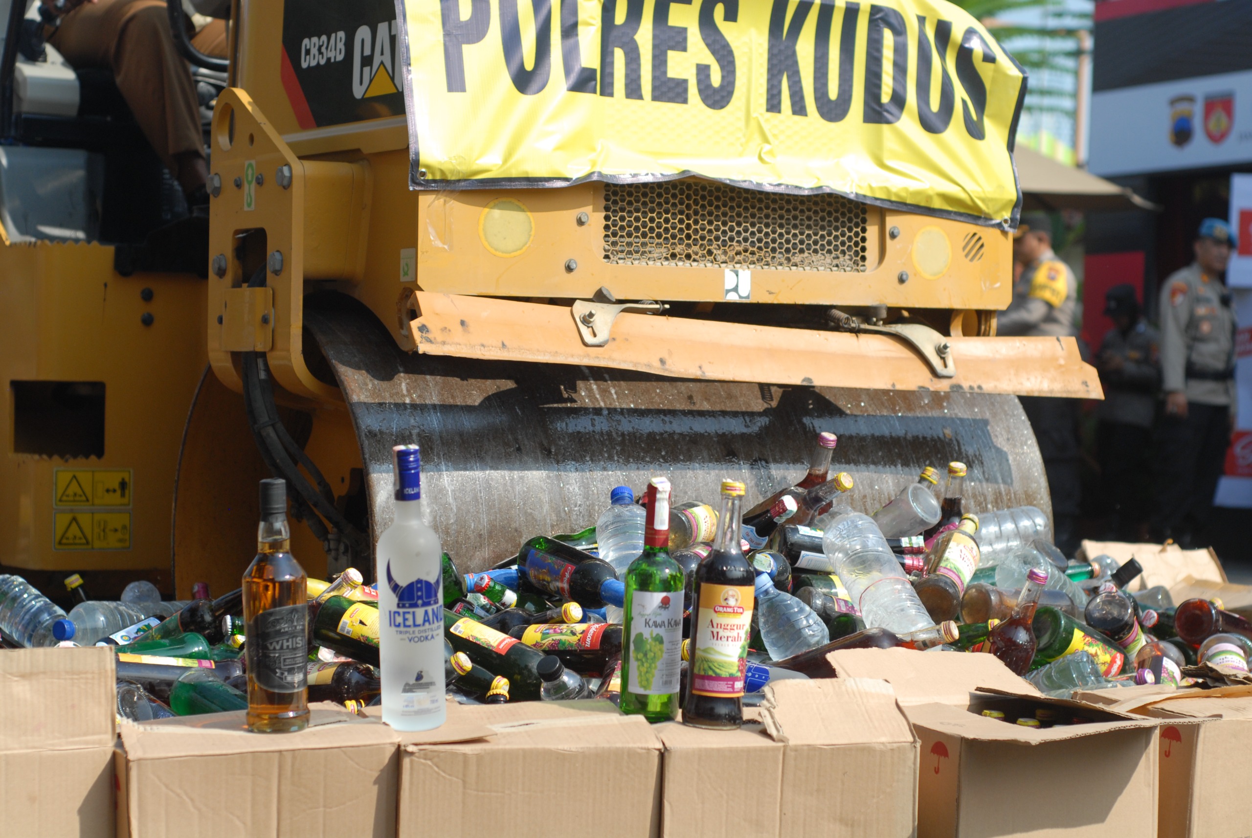 Ratusan Botol Miras Diamankan Satpol PP Kudus dari Jati dan Gebog